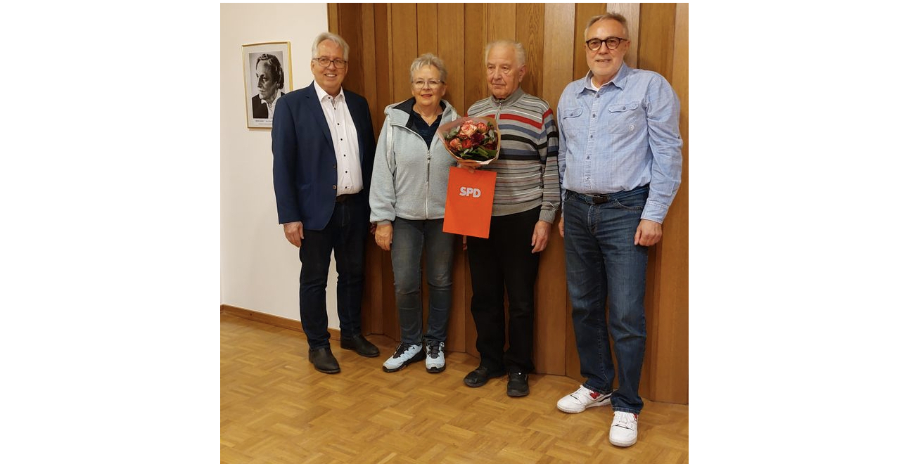 Helmut Franz wurde für sage und schreibe 70 Jahre Parteizugehörigkeit gedankt. Die Laudatio hielt der ehemalige Landrat Jürgen Müller (s.Bild mit Ralf Jaworski und der ehemaligen Landtagsabgeordneten Angela Lück)